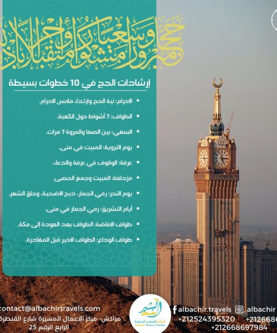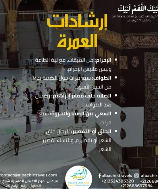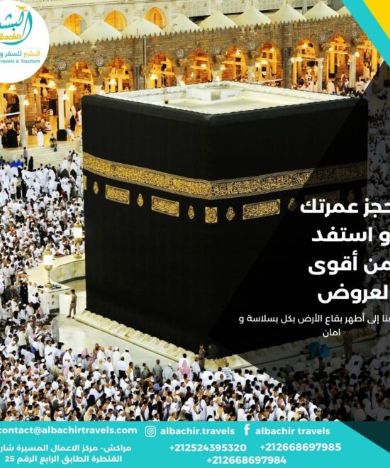 نرافقك في العمرة والحج، وننظم رحلات سياحية داخل المغرب وعروض سفر دولية مختارة بعناية لتجربة لا تُنسى
